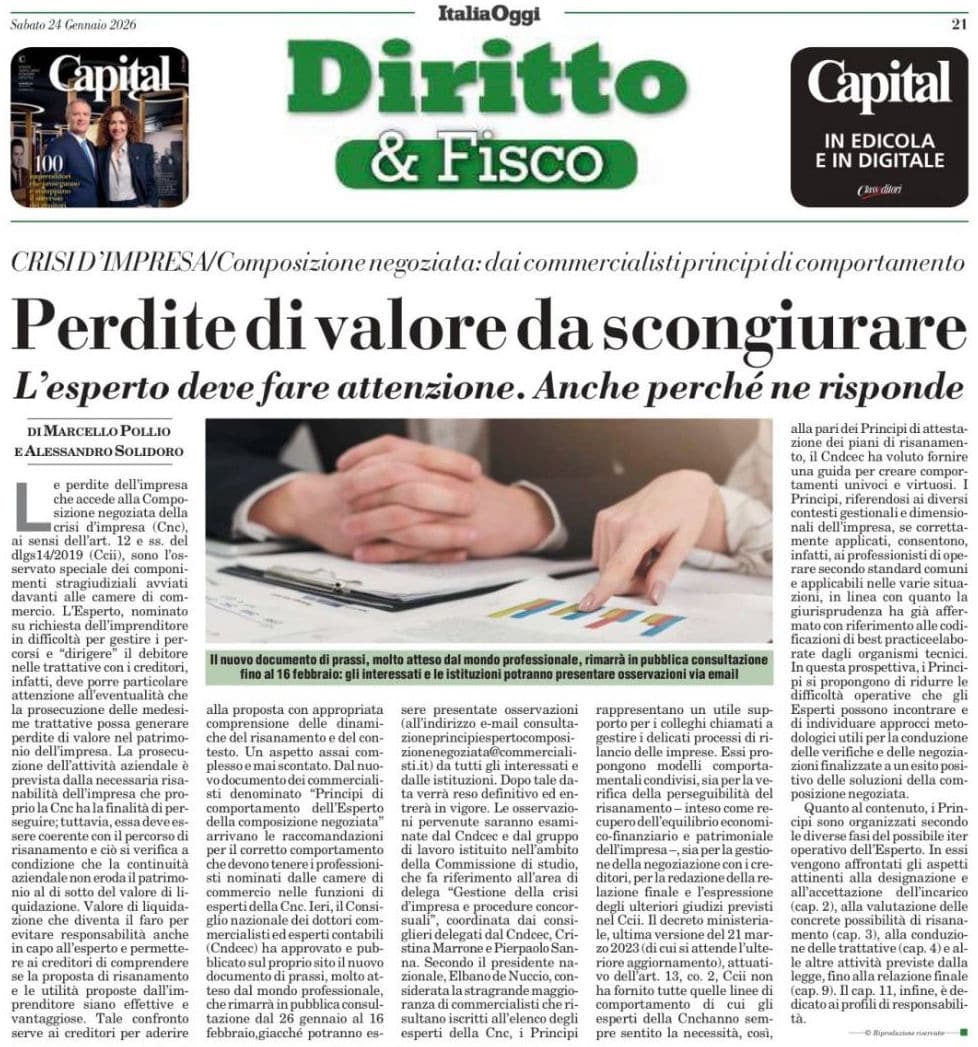 Articolo di Alessandro Solidoro, pubblicato su Italia Oggi | Diritto & Fisco.